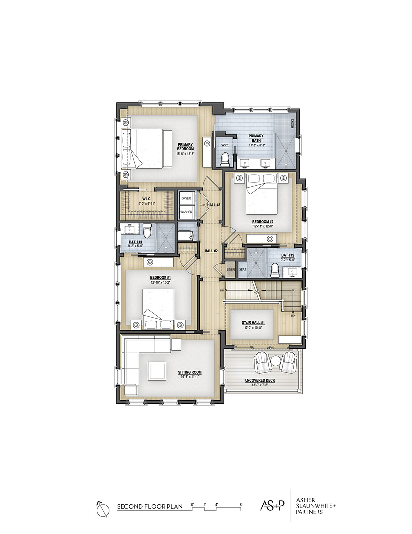 The second floor features three spacious en-suite bedrooms, ensuring privacy and comfort, along with a second-floor deck to take in the coastal breeze. The top floor adds two additional bedrooms and a full bath—perfect for accommodating Additional guests And extended family.