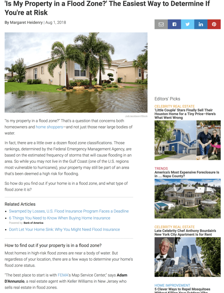 Thank you Realtor.com for recently interviewing me for your article on Flood Zones! Locally, at the Jersey Shore, most are aware of that our islands are flood zones. Other parts of the country have less experience on how to identify if a property is in a flood zone.