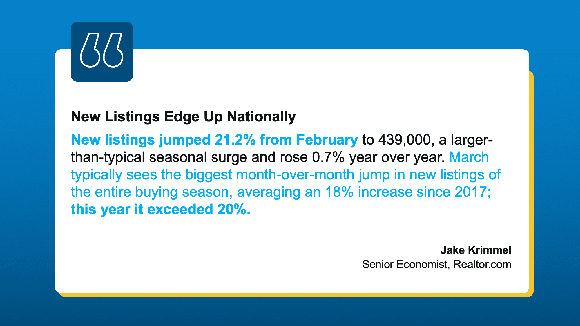 • Seller activity increased heading into spring