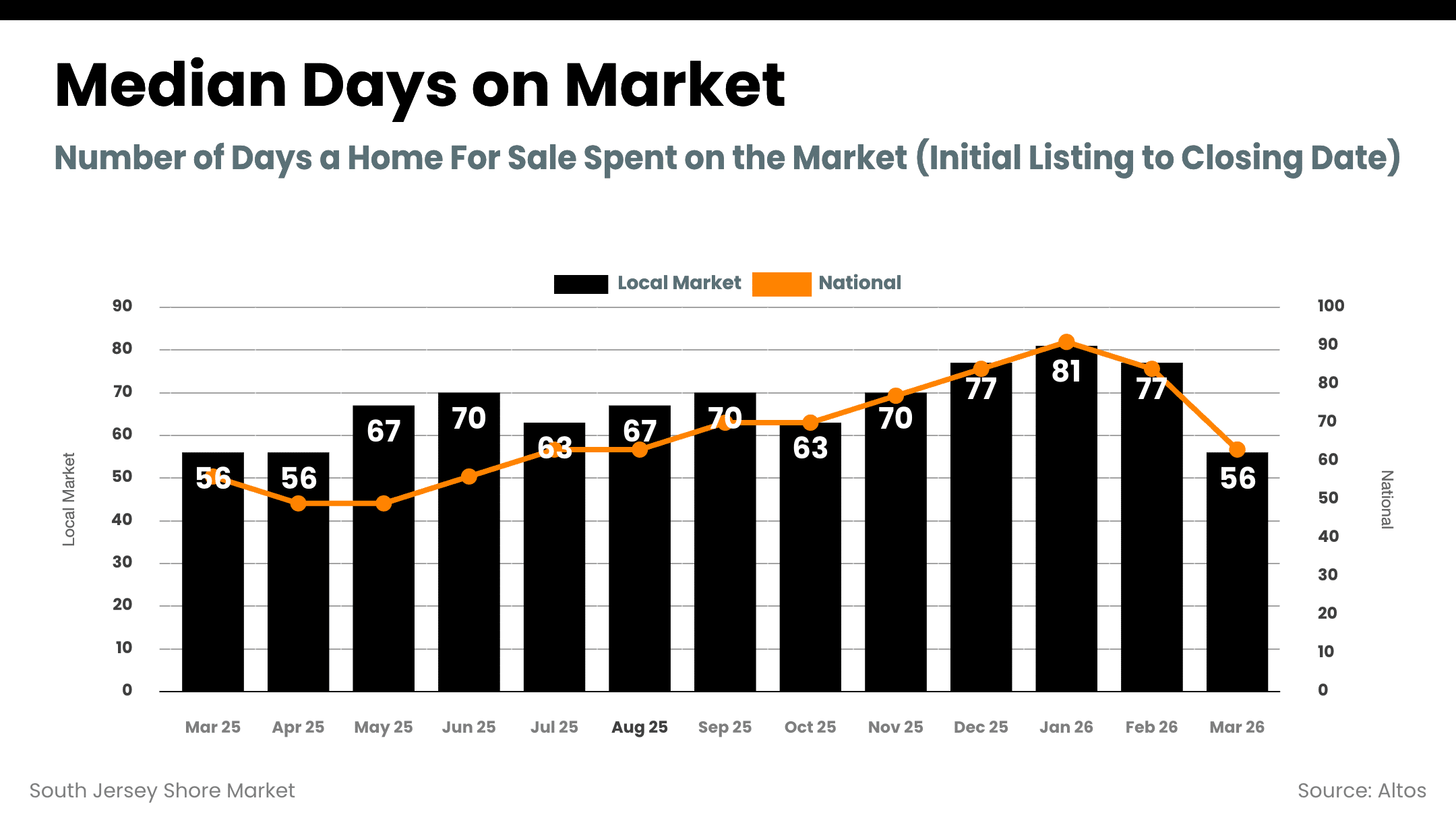 • Stable days on market