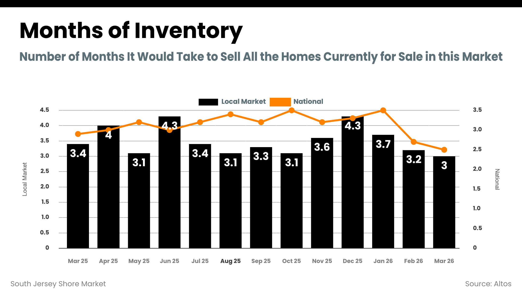 Atlantic County entered spring with balanced conditions and increasing activity. Inventory is hovering near balanced levels, pricing remains stable, and pending activity has increased.