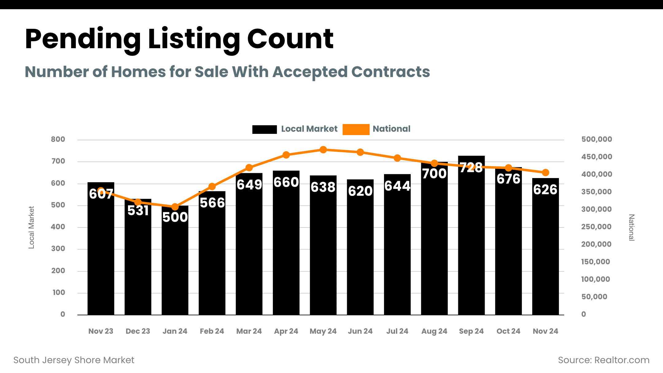 Despite high mortgage rates, pending contracts continue to rise. November 2024 saw 626 pending listings in the South Jersey Shore market compared to 607 in November 2023. Competitive markets like New Jersey continue to see multiple offers on well-priced homes. - Home Prices Continue to Appreciate