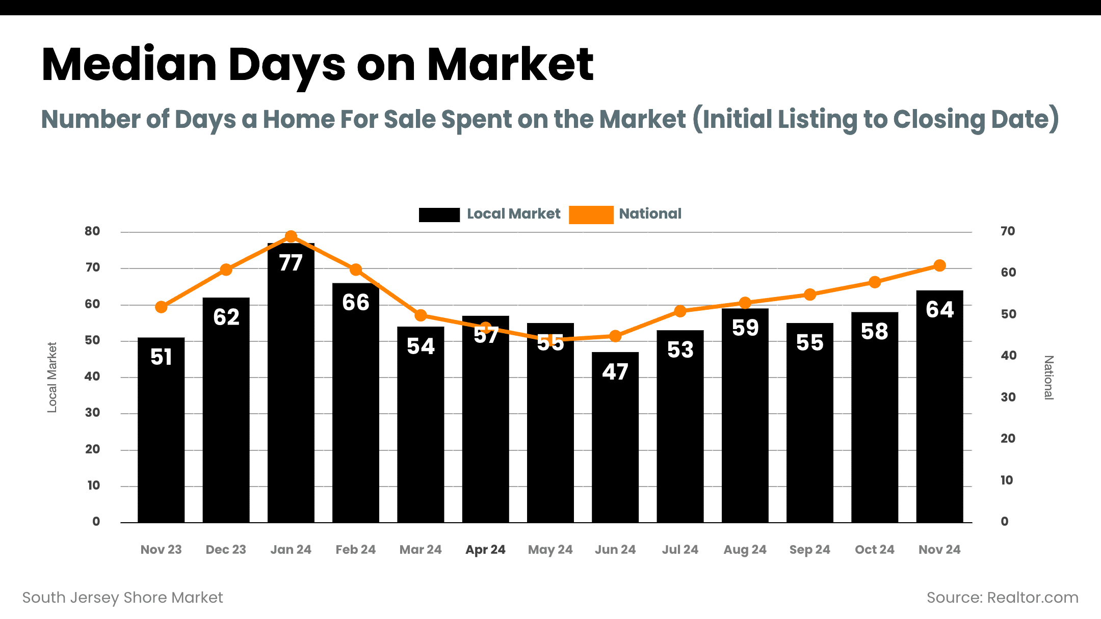 - Days on Market: Median days on market rose to 64, up from 51 in November 2023, reflecting a slightly slower sales pace.