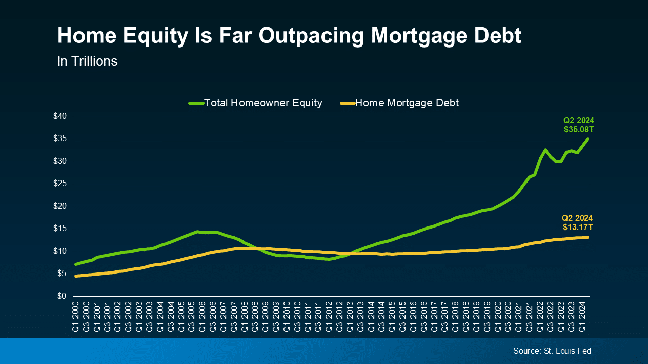 - Home Equity: Total U.S. homeowner equity reached $35.08 trillion in Q2 2024, far outpacing $13.17 trillion in mortgage debt.