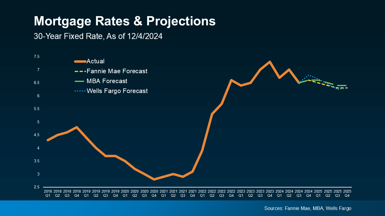 December 2024 marks the beginning of a slight decline in mortgage rates after years of elevated levels. Currently, 30-year fixed rates average around 6.69%, with projections suggesting they could fall to 6.34% by the end of 2025. This shift could open doors for more buyers, improving affordability and boosting activity. - Inventory Levels Are Improving—Slowly