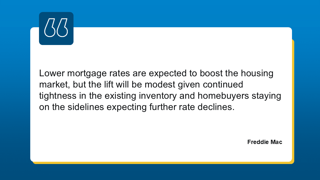 - Home Sales: Total home sales are projected to rise modestly, rebounding from the lows of 2024.