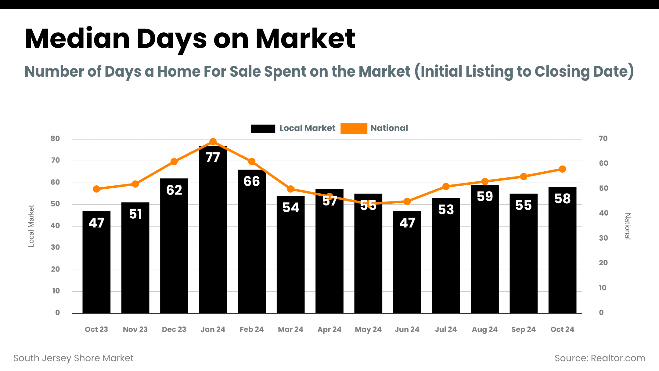- Days on Market: Homes in South Jersey Shore are selling in a median of 58 days—just slightly above the national median of 55 days. Well-priced, move-in-ready properties continue to attract serious buyers.