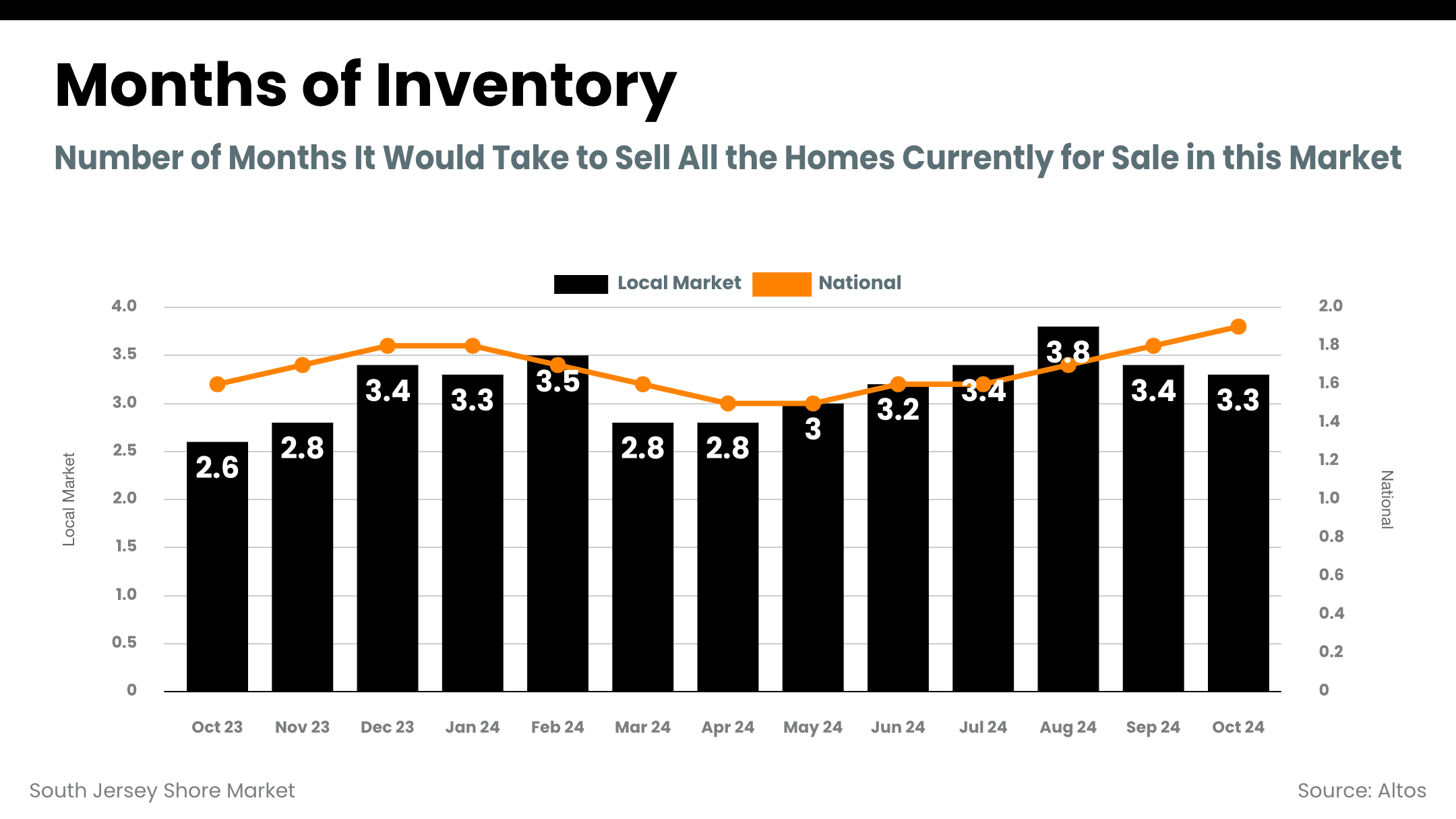 - Inventory Levels: Locally, months of inventory sit at 3.3 months, reflecting a seller's market. Nationally, inventory is even tighter at just 1.8 months. For sellers, this means reduced competition and strong opportunities to list.