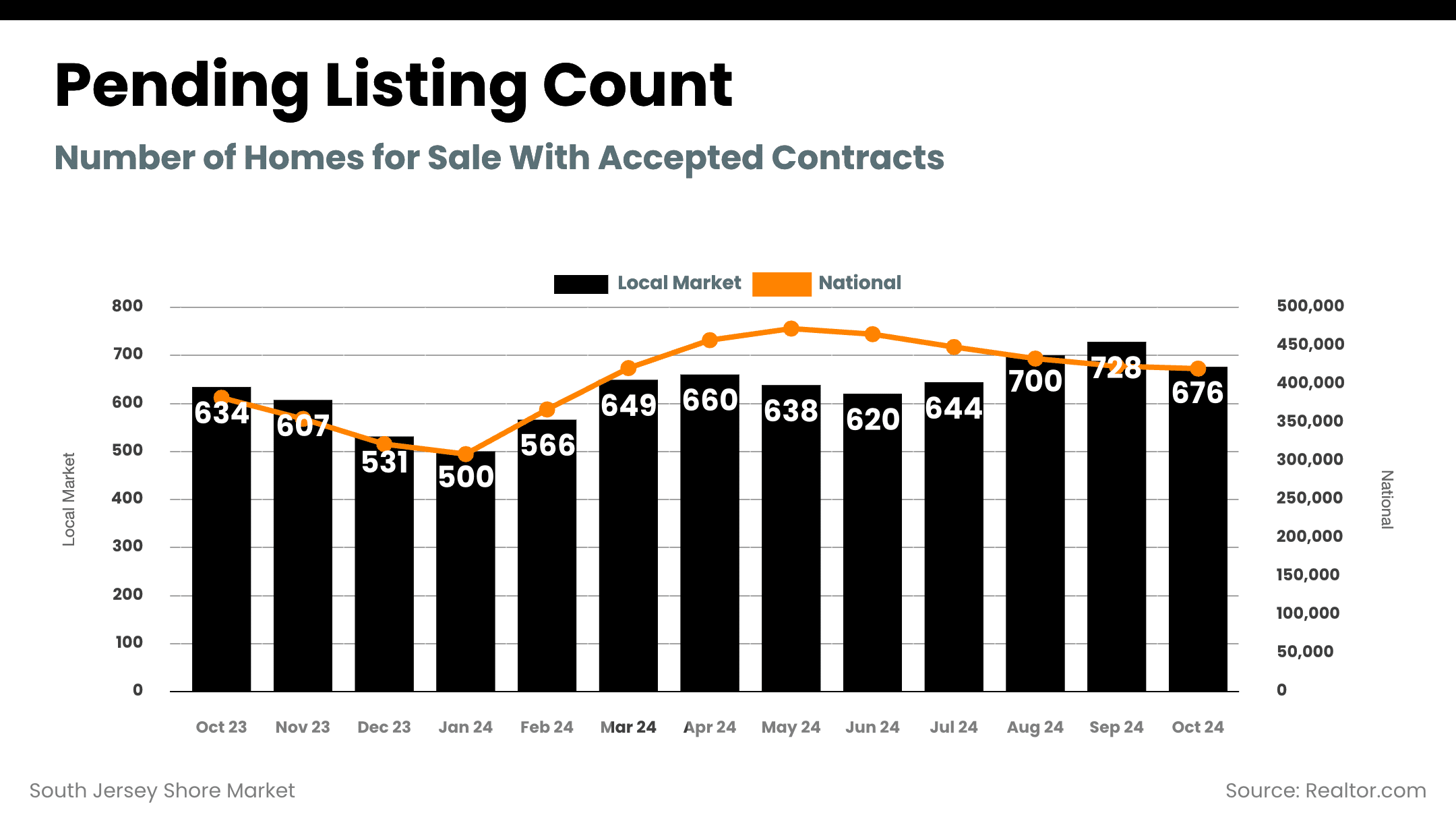 - Buyer Activity: Pending sales reached 676 homes in October, a slight seasonal dip from September's peak of 728, but still reflective of motivated buyers. Showings remain stable, down only 8.7% from January, significantly outperforming 2022’s 21.3% drop.