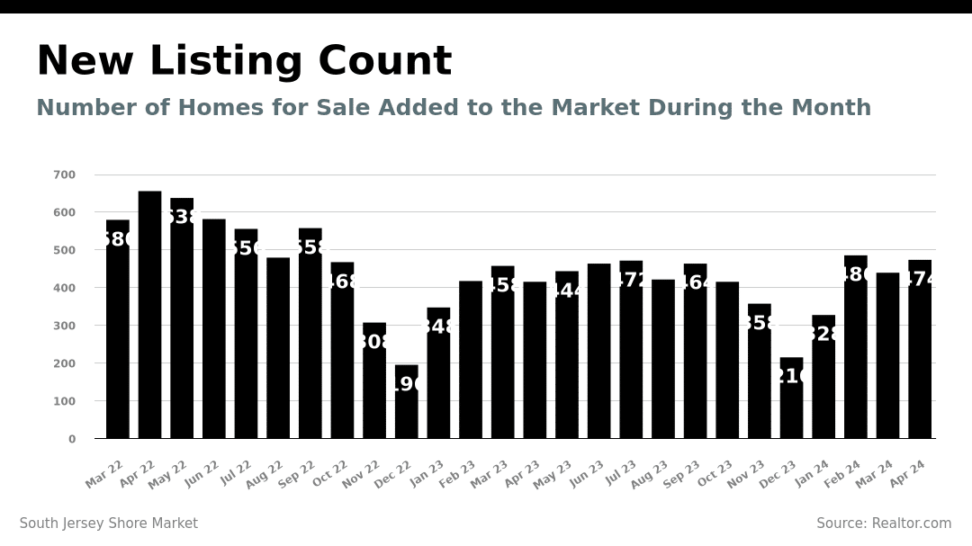 - New Listings: April 2024 saw a significant drop in new listings compared to previous years. Listings fell from approximately 650 in April 2022 to around 475 in April 2024.
