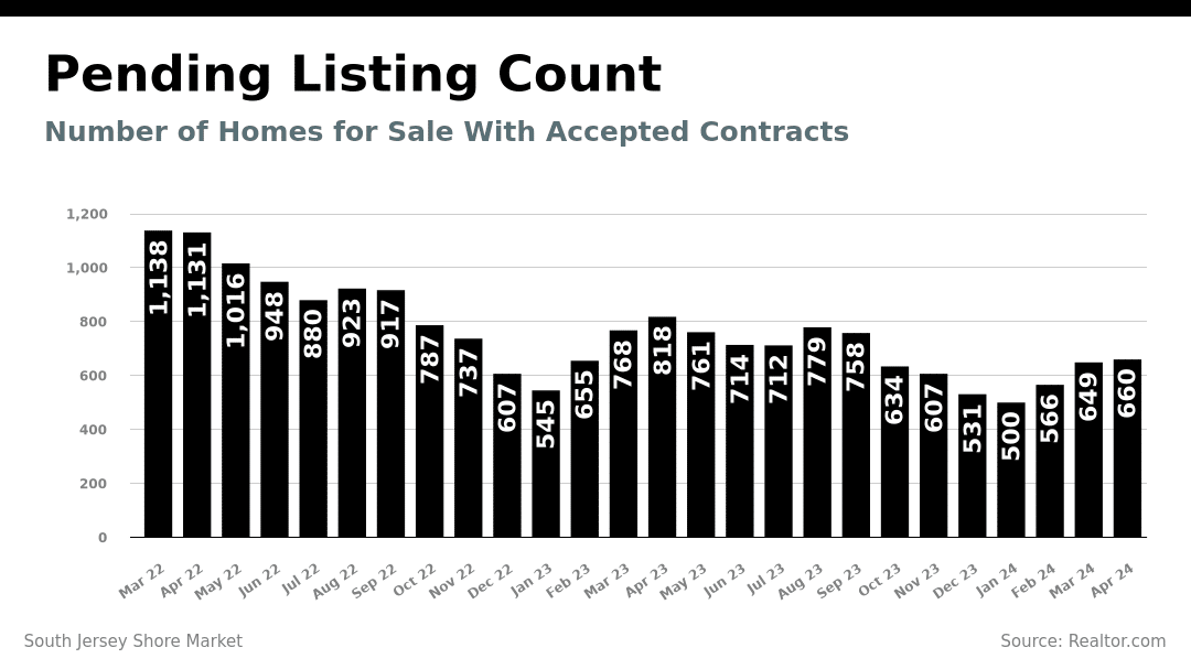 - Under Contracts: Similarly, the number of properties going under contract has decreased from about 1100 in April 2022 to around 650 in April 2024.